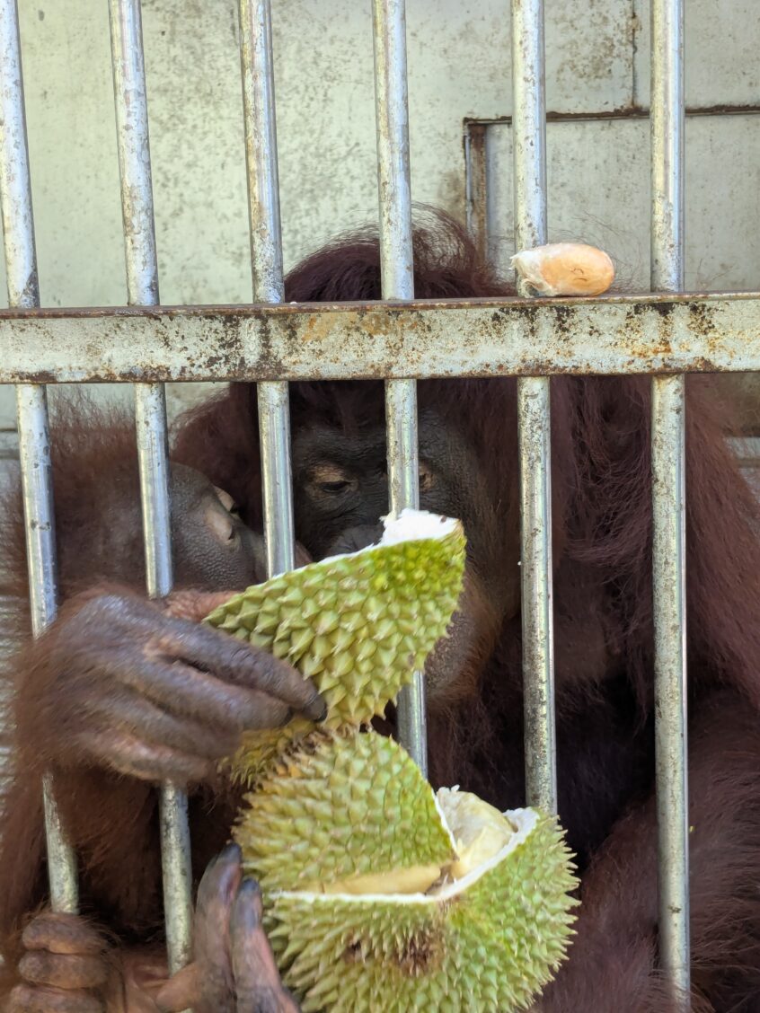 SINTA During their time in the isolation cage while awaiting their release schedule, Sinta and her offspring, Sabine, have been observed to be in good health and condition. Both display active and responsive behavior toward their surroundings, particularly during feeding … Read More