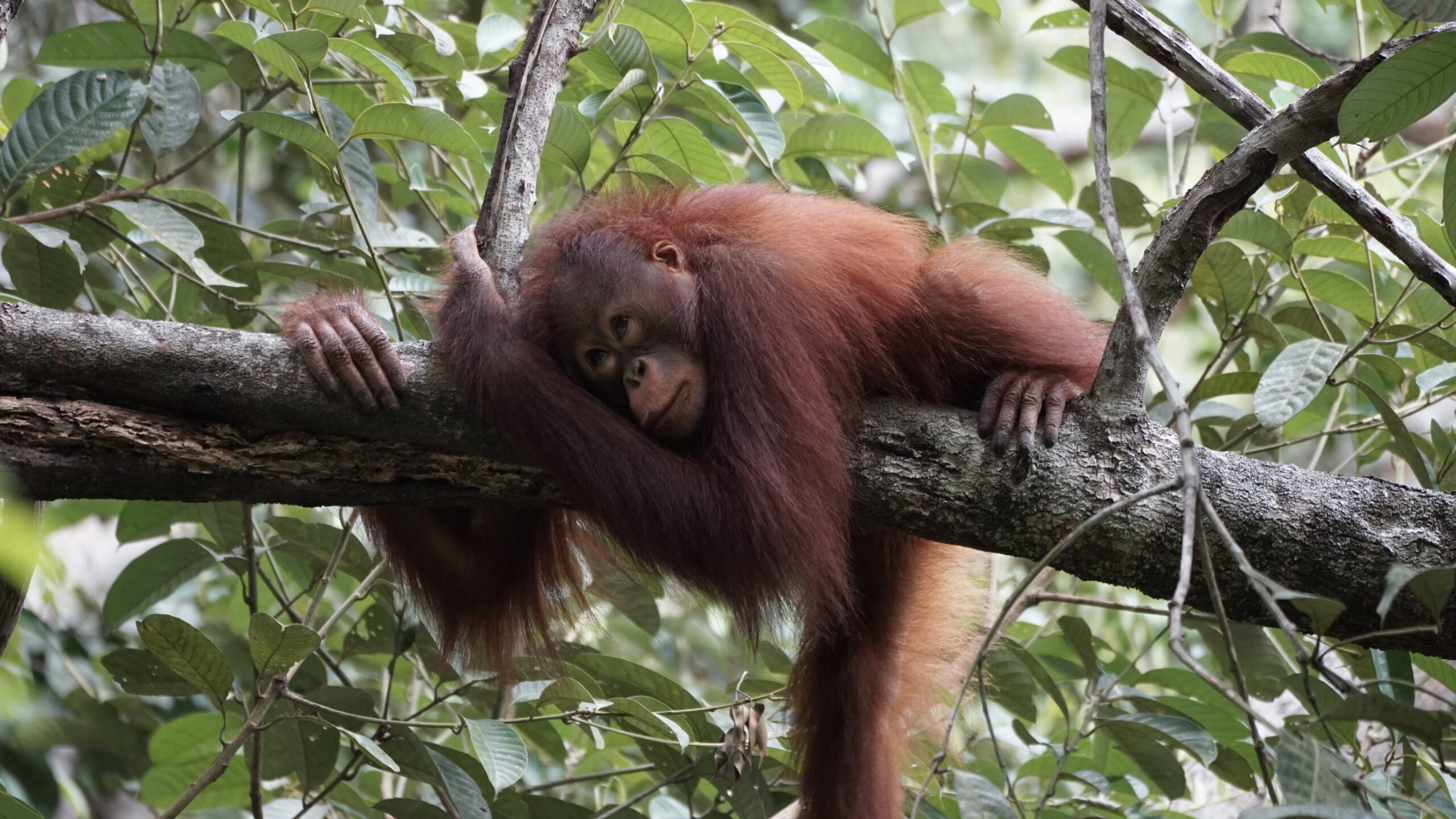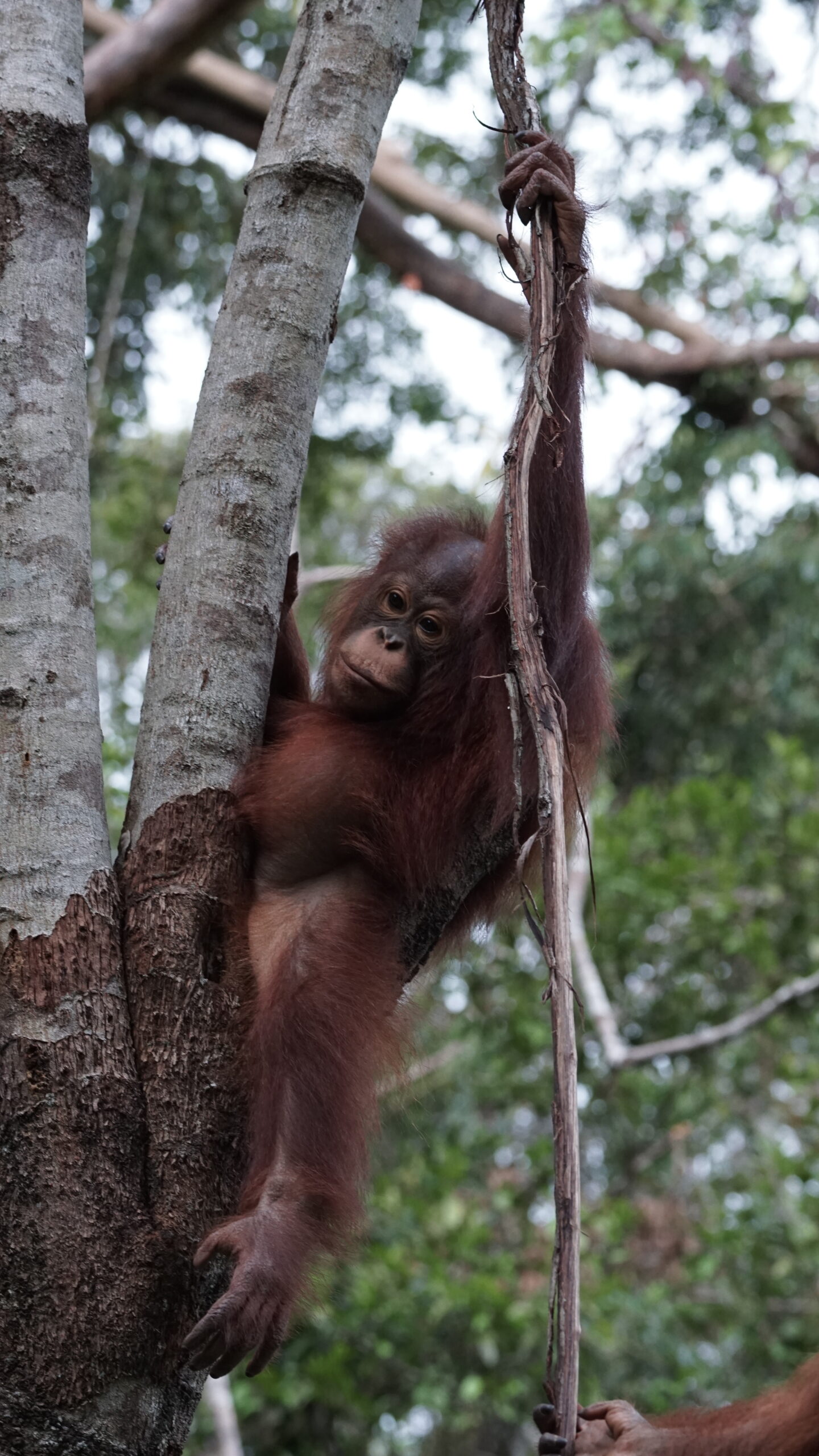 Banir attended two forest school sessions this month with her group, and her participation remained steady and consistent. However, the predominantly rainy weather did influence her ranging behavior. When rainfall made tree trunks and branches wet and slippery, Banir reduced her movement and showed increased caution when hanging between trees.