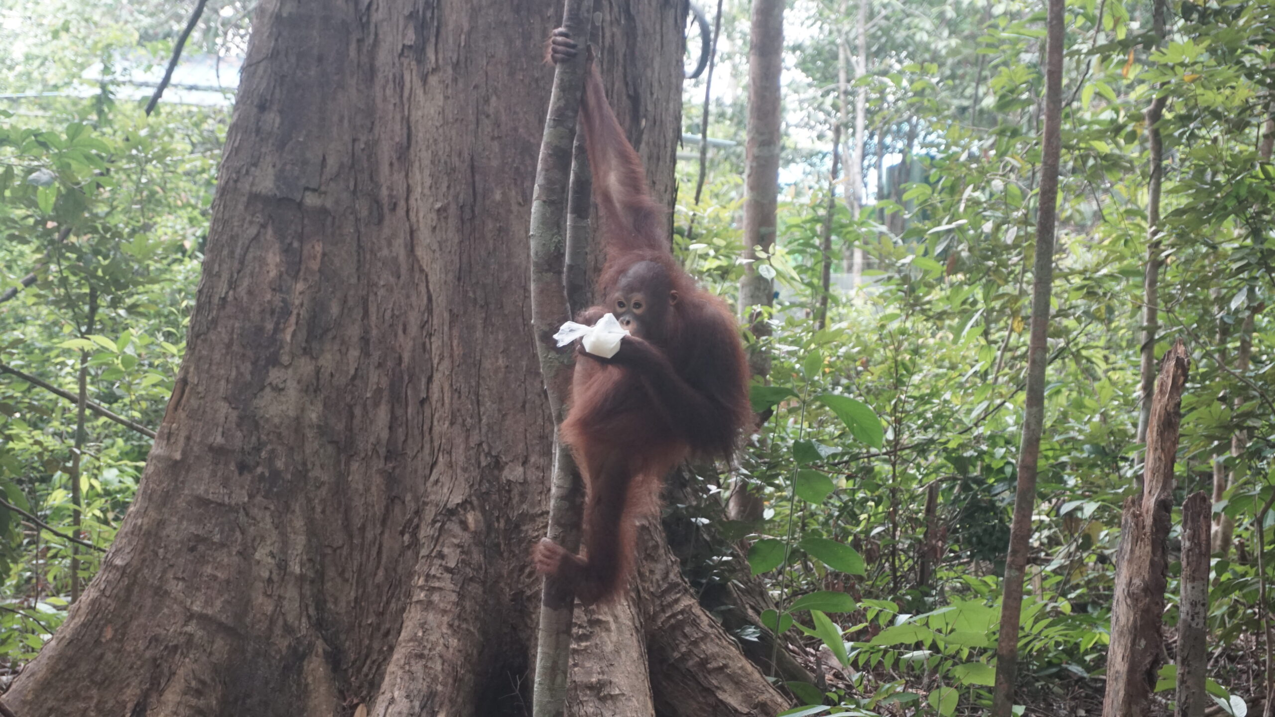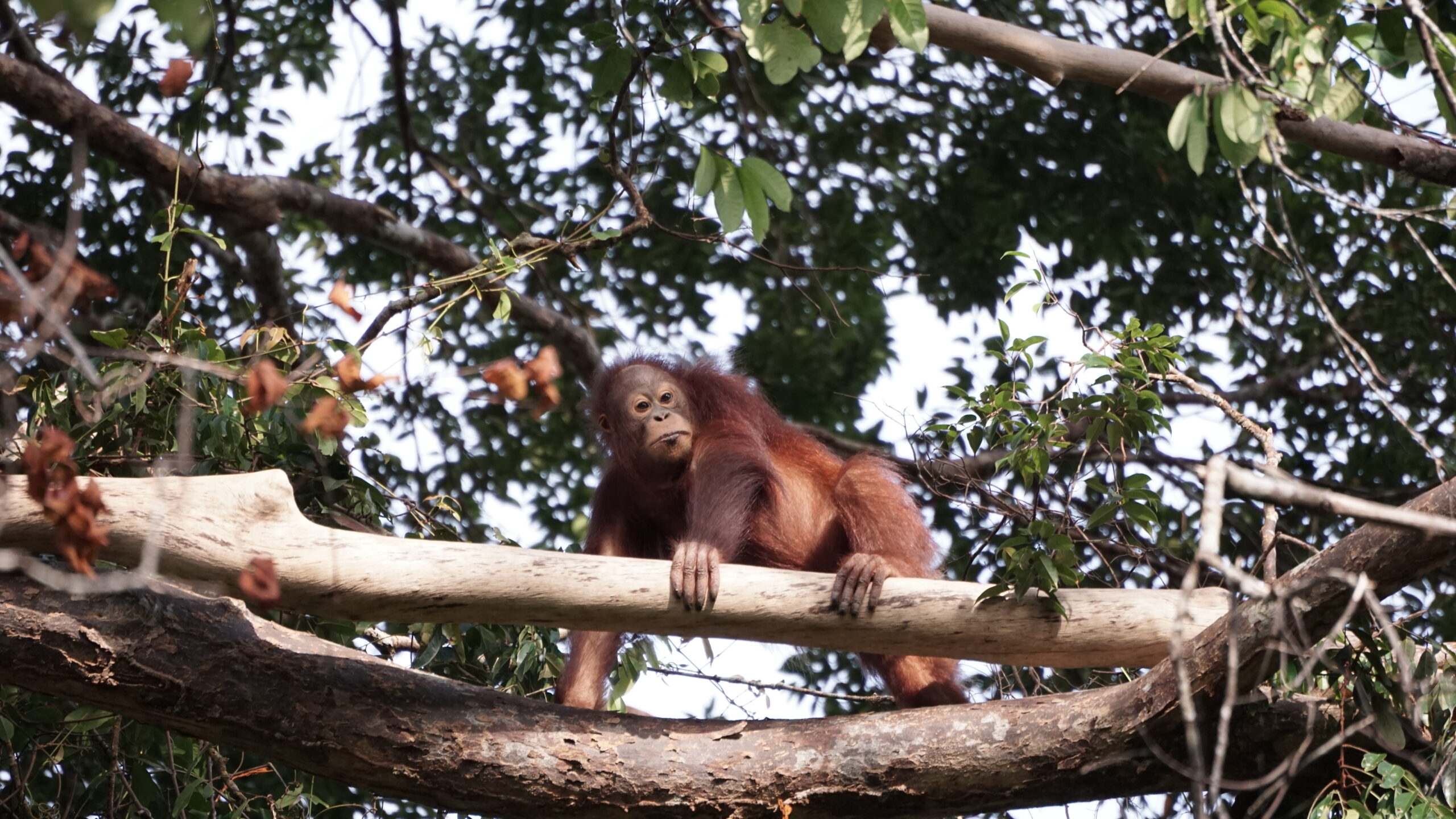 Although Banir has not yet been observed building a nest, her ability to select appropriate resting sites indicates well-developed arboreal instincts. This behavior represents a positive indicator in her ongoing rehabilitation process and reflects her growing ability to recognize and respond to her natural environmental needs as an orangutan.