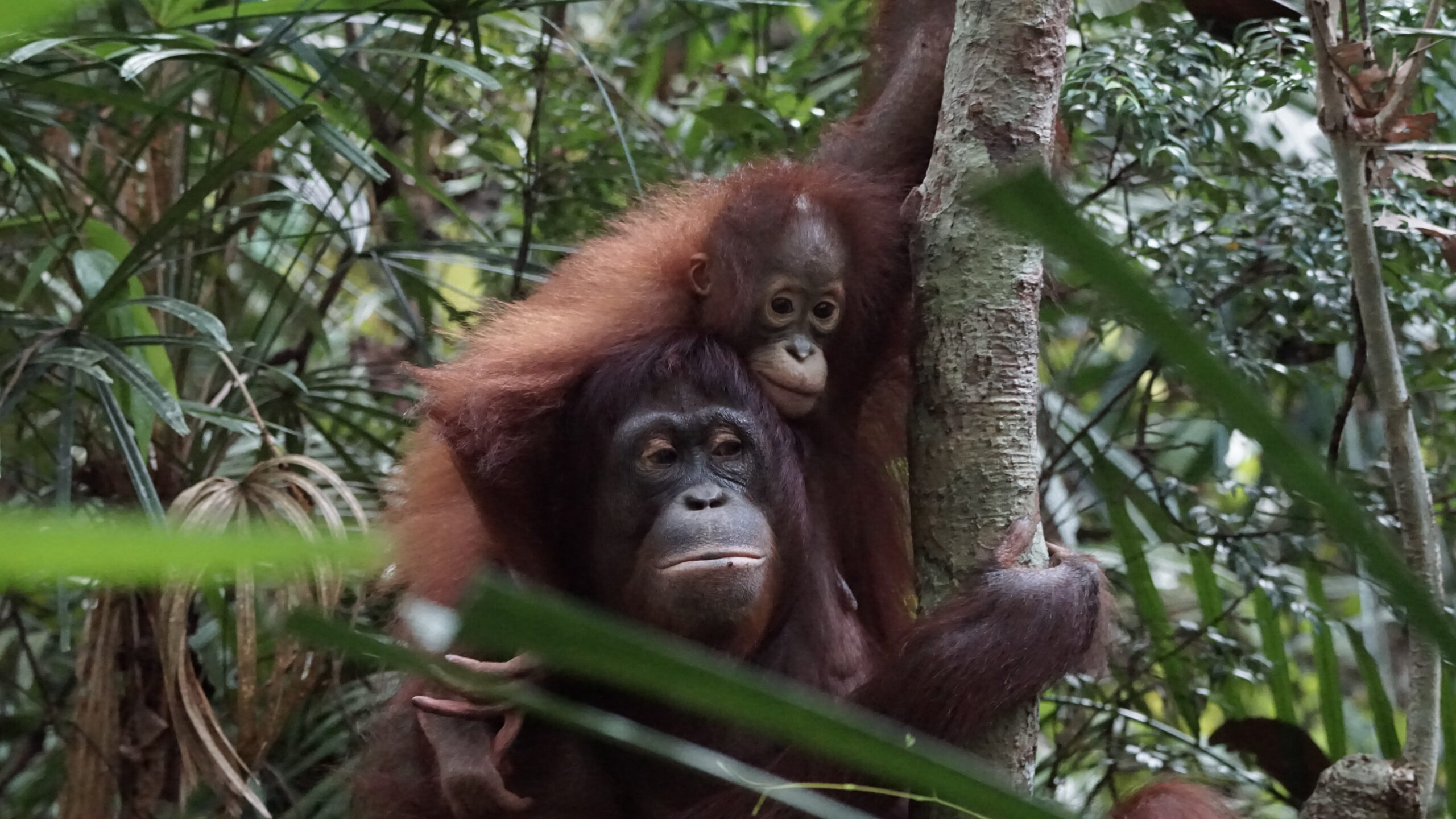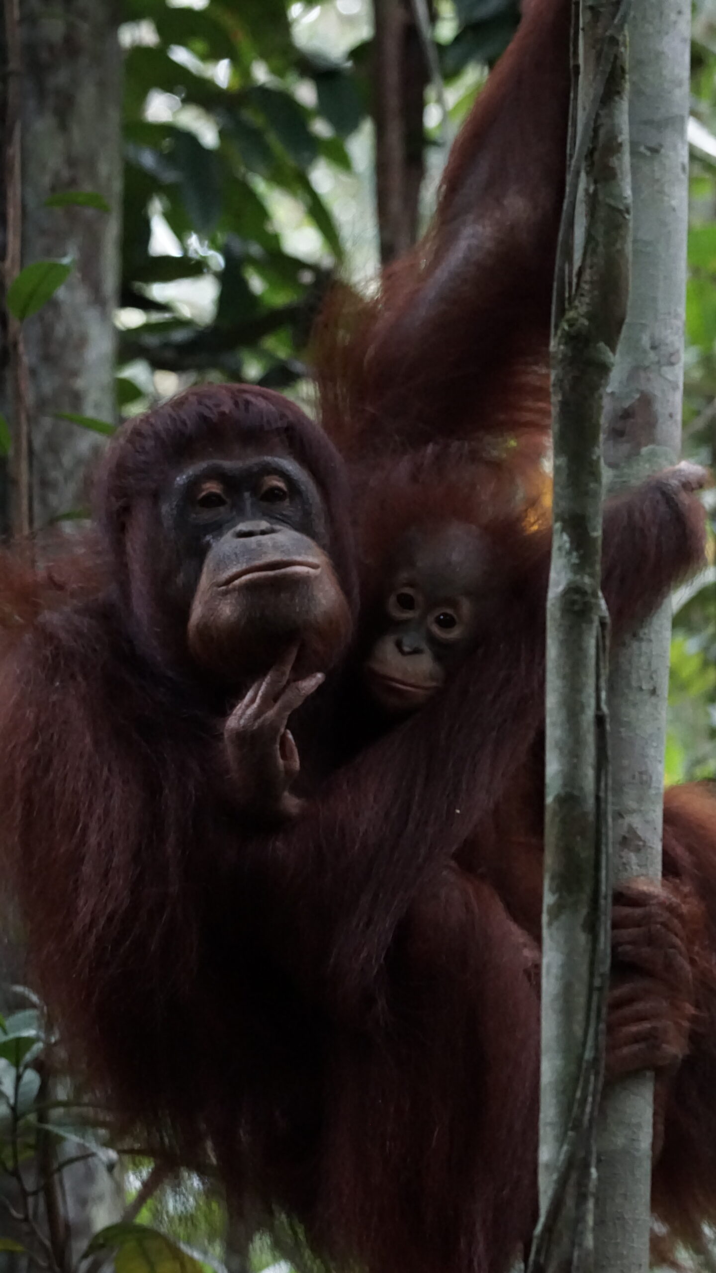 Exploration activities were generally more intensive in the morning and late afternoon. In between these periods, Sinta and Sabine were often observed resting on tree branches. Sinta tended to rest for longer durations, while Sabine paused only briefly—most commonly during nursing. In recent days, there have been fewer “forest school” activities in the sense of structured training, as their primary focus has been on natural foraging and resting, in line with the abundance of forest fruits.